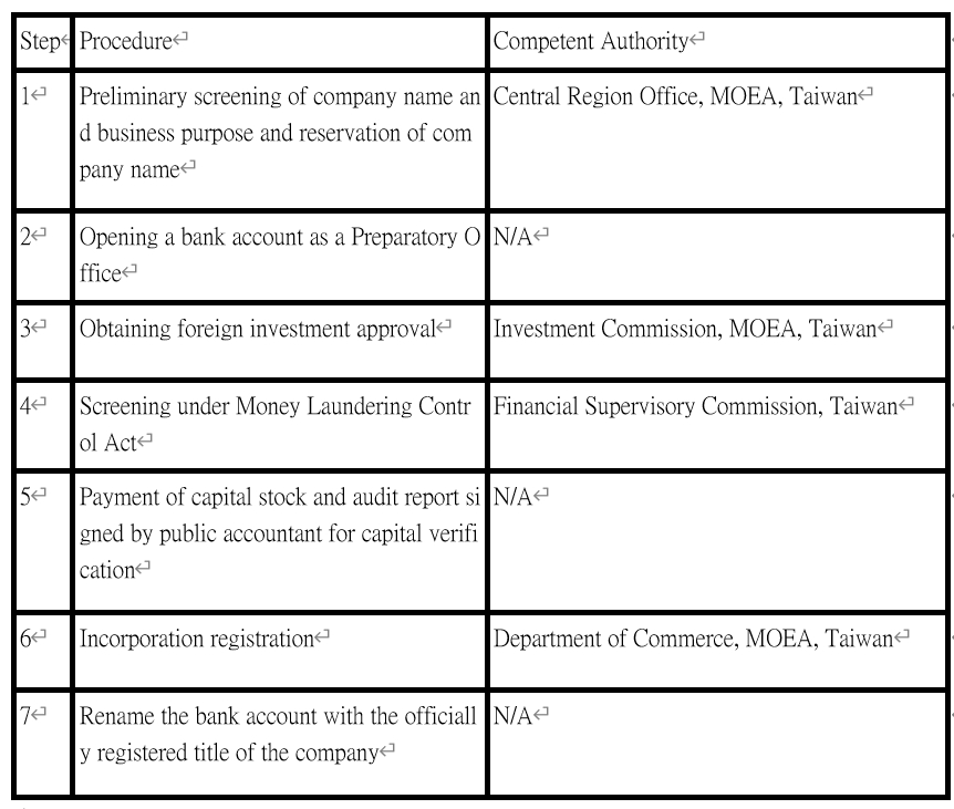 - Procedures for Registration of a Local Company in Taiwan