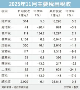 營業稅創單月新高,營所稅、綜所稅、證交稅等多項稅目創同期新高。 🏆